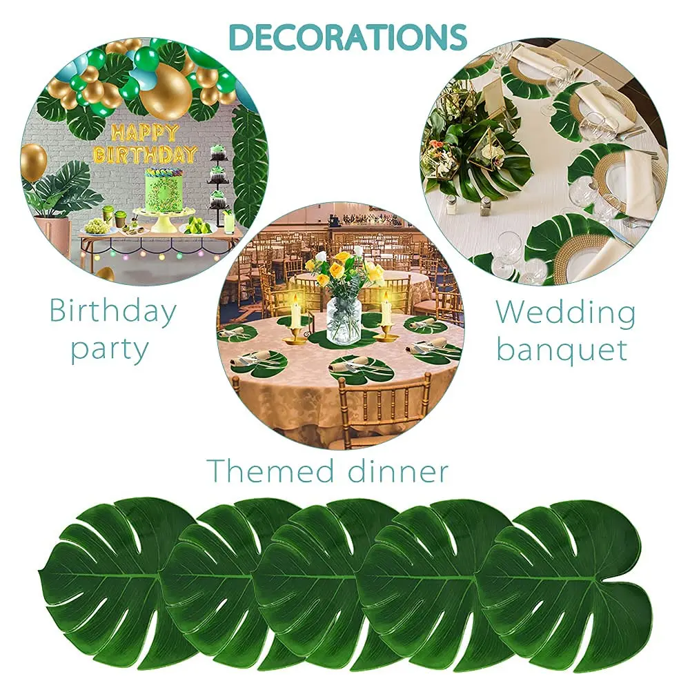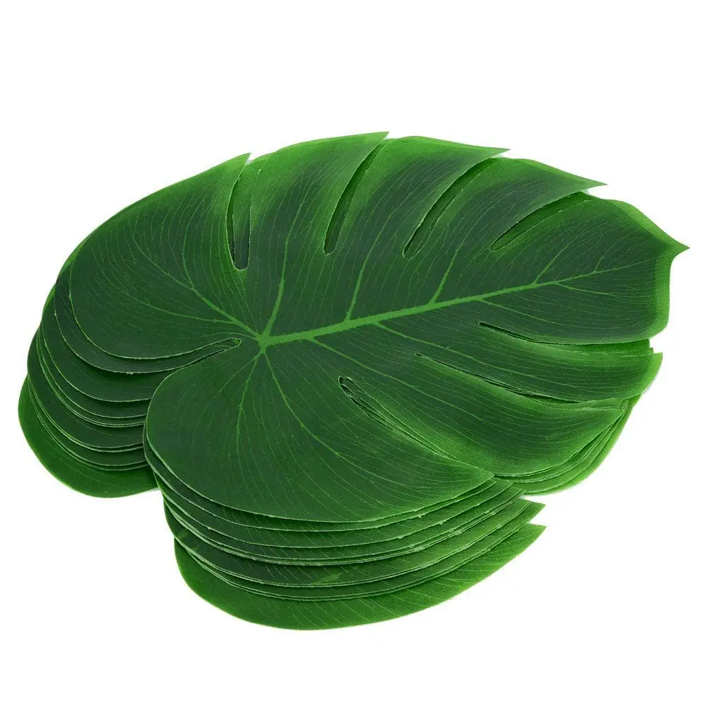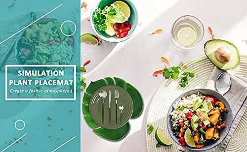 12개의 코스터 세트 매트 세척 가능한 플레이스매트, 파티 장식을 위한 열대 잎 플레이스매트 Jungle Beach BBQ#