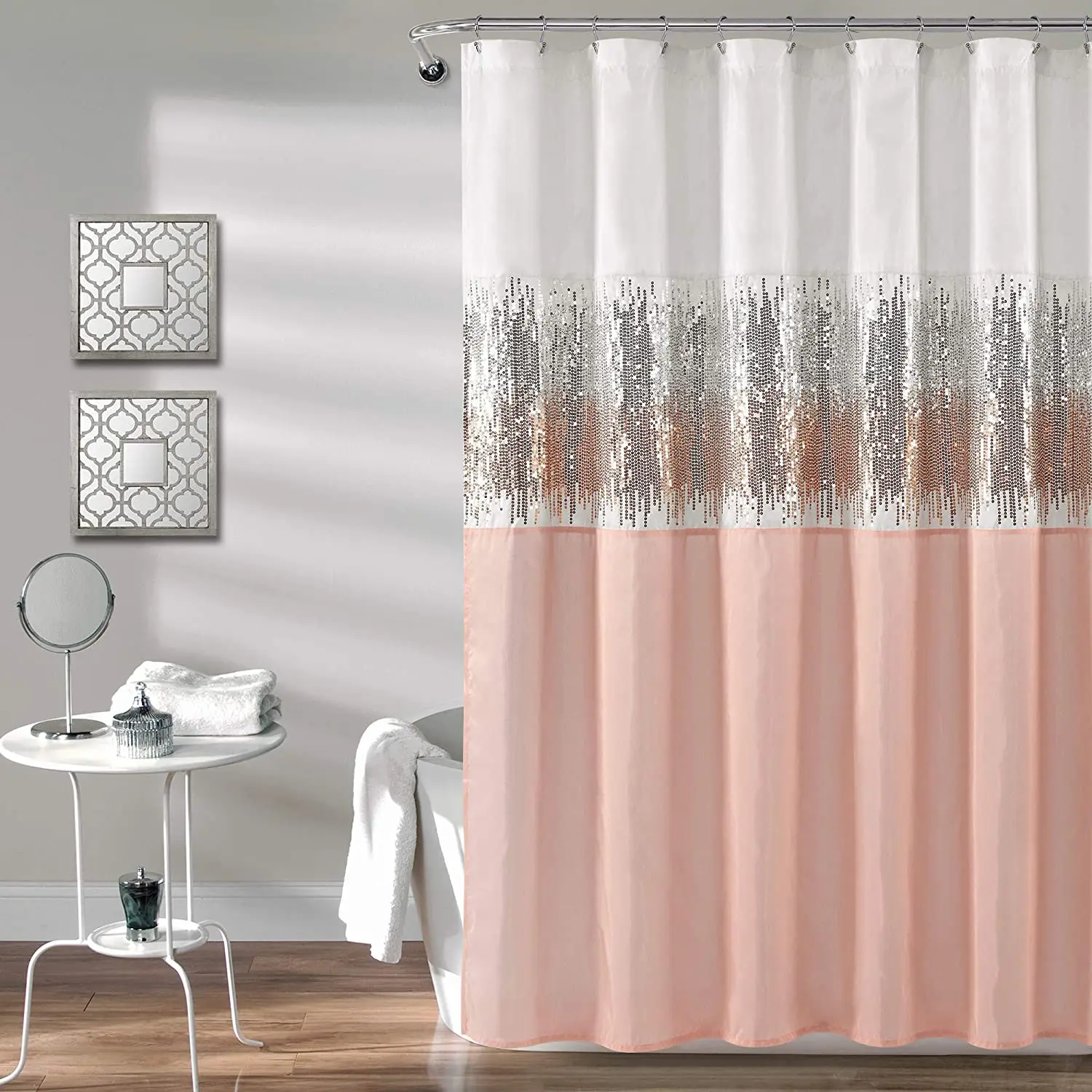 샤워커튼 고급 핑크 스팽글 샤워커튼 욕실커튼 홈데코