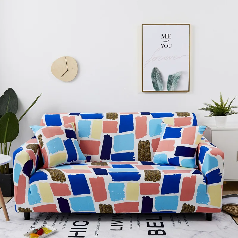 도매 기하학적 웨이브 패턴 홈 장식 아이템 스트레치 소파 커버, 즉시 배송 가능한 인쇄 L자형 커버 소파/