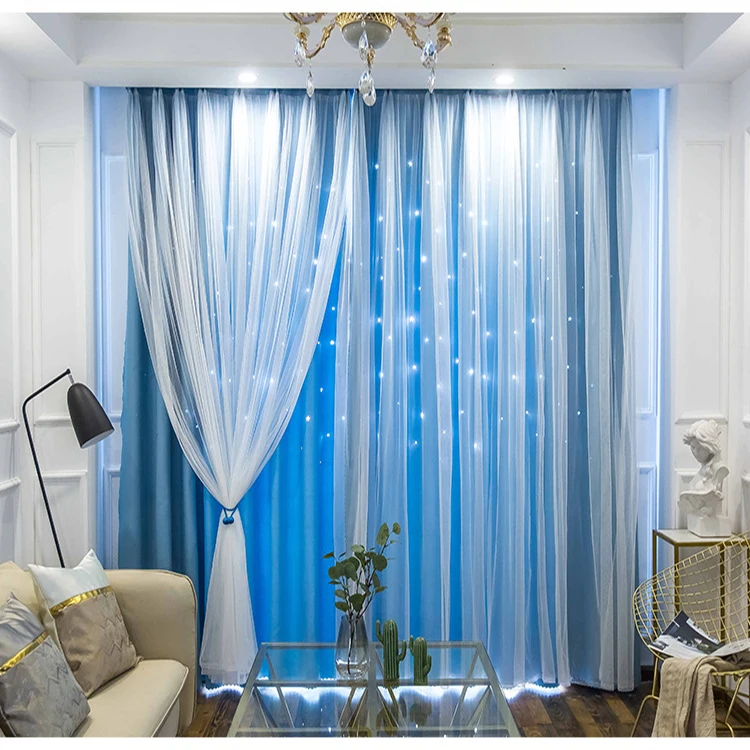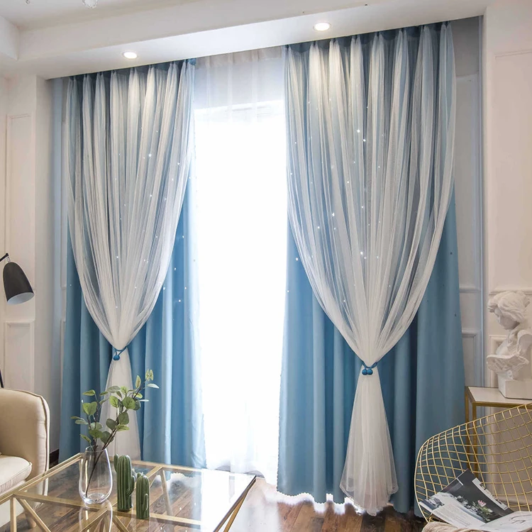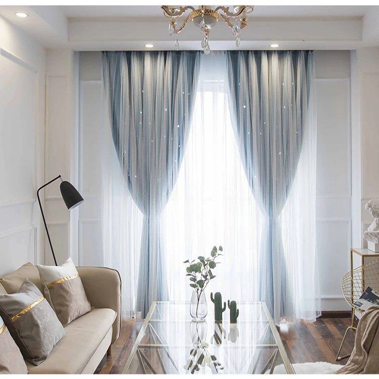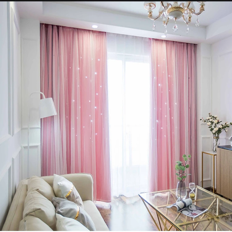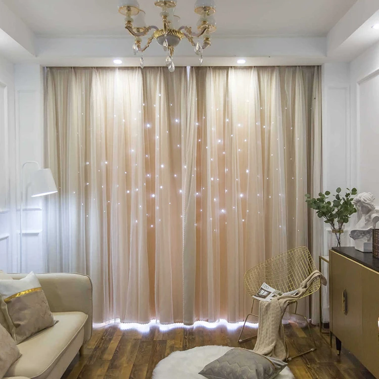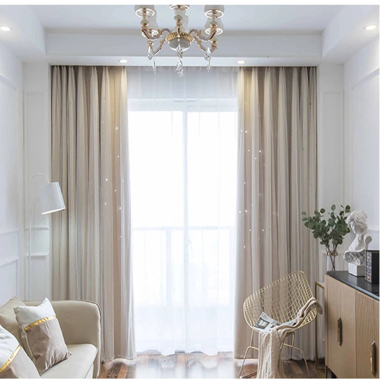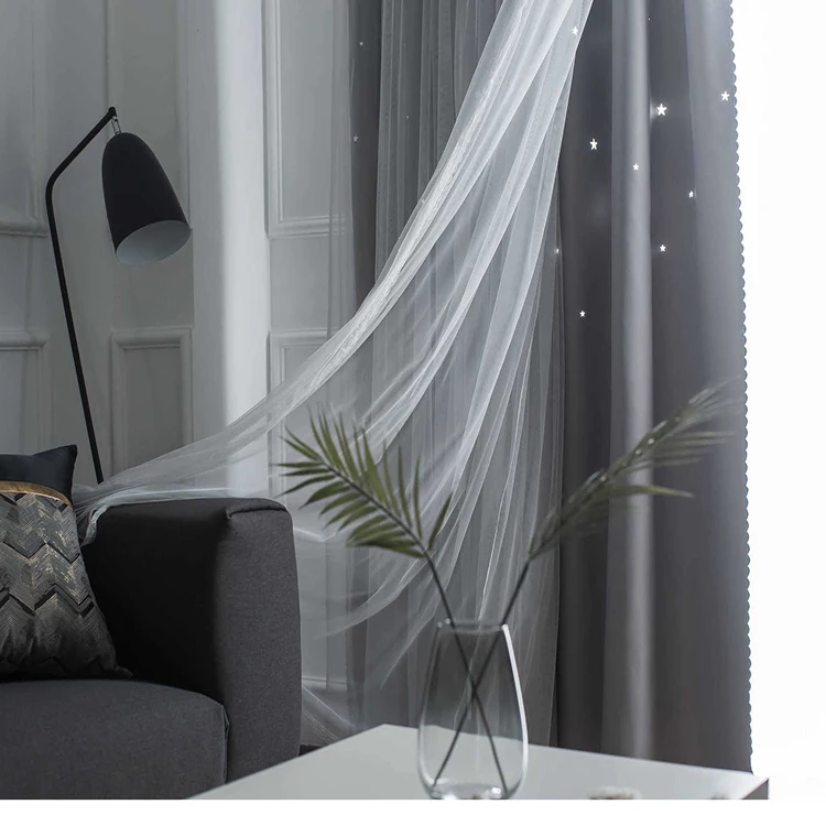 도매 상품 블랙아웃 윈도우 커튼, 공장 직접 판매 홀로우 아웃 스타 블랙아웃 커튼/